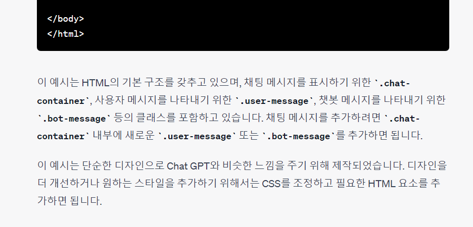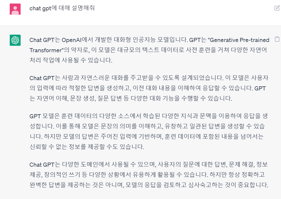 이처럼 chat gpt로 구체화된 질문을 던지면 보다 정확한 답변을 얻을 수 있다.