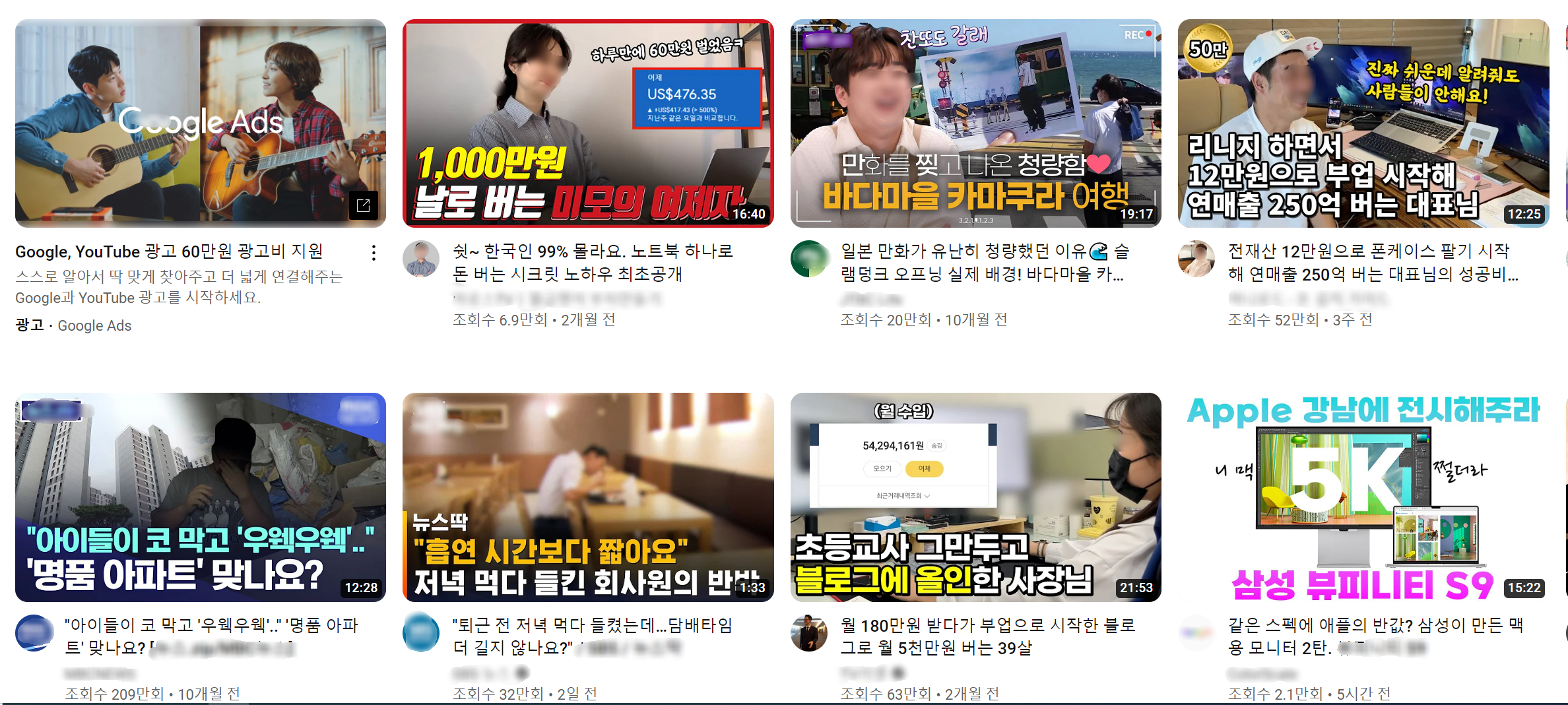 개인적인 지식정보를 영상 혹은 블로그 글로 써내려 가면서 그 글과 관련된 키워드로 유입 된 사람들이 폭발적으로 늘어나면서, 현재 유튜브에는 회사를 다니지 않고도 돈을 벌 수 있는 방법을 찾으려는 사람도 많이 늘어나게 되었습니다.